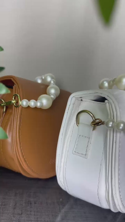 Cross body bag with a flap and pearl handle, inside pocket, magnetic clasp closure