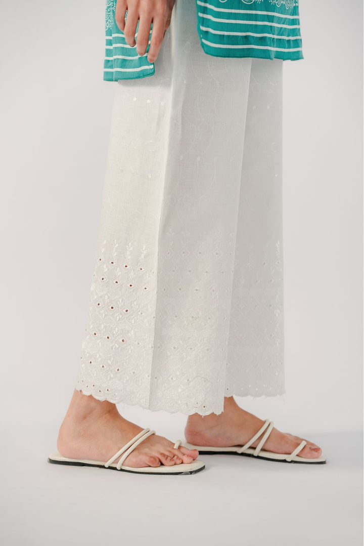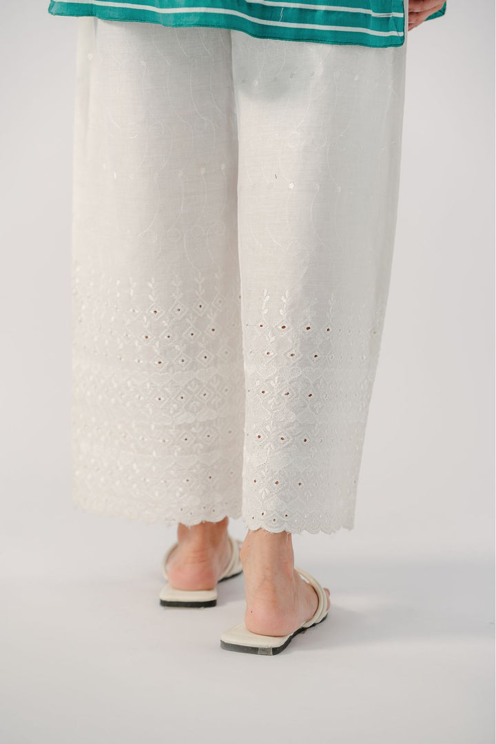 The White Chikankari Palazzo expertly blends traditional embroidery with modern comfort for a graceful and versatile wardrobe essential.