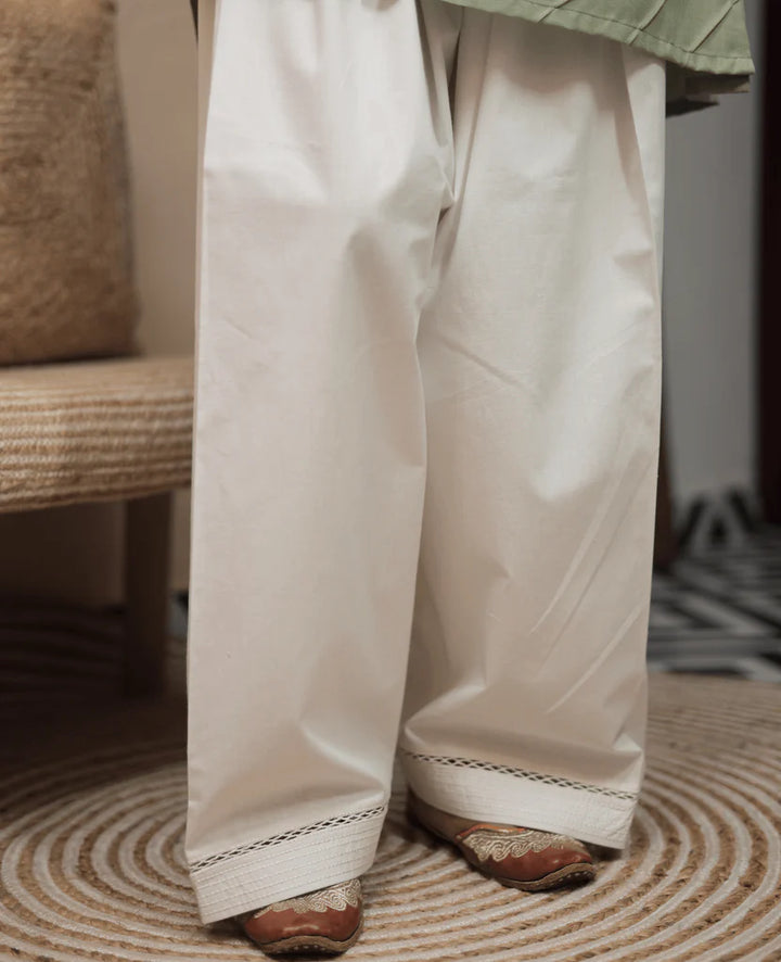Bin Saeed White Farshi Shalwar With Lace Detailing